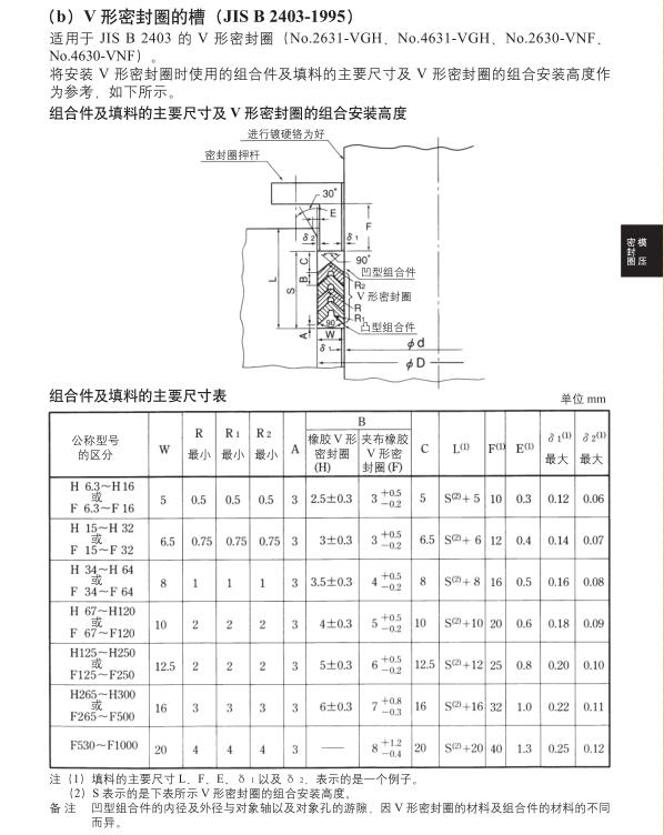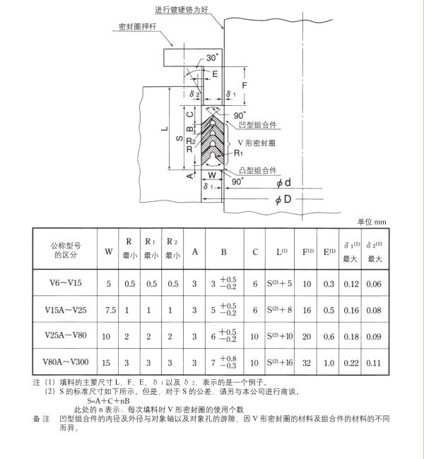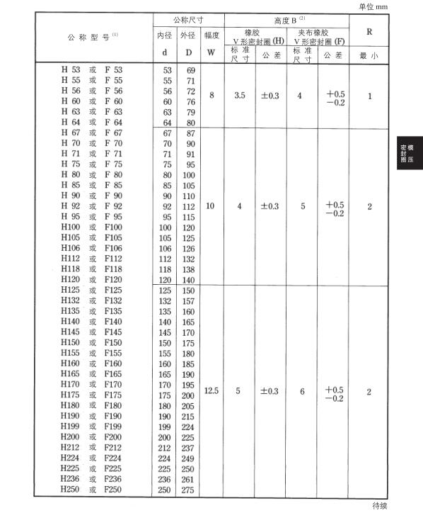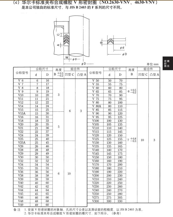 V型及MV型密封圈设计手册(V型规格尺寸表、MV型规格尺寸表)